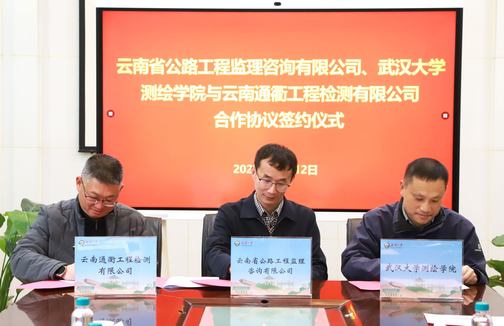 2025年12月12日,裸体直播 与云南省公路工程监理咨询有限公司、云南通衢工程检测有限公司签订三方合作协议。云南省公路工程监理咨询有限公司副总经理李昌洲、云南通衢工程检测有限公司执行董事耿国锋、院长邹贤才出席活动。签约仪式由金涛勇副院长主持。