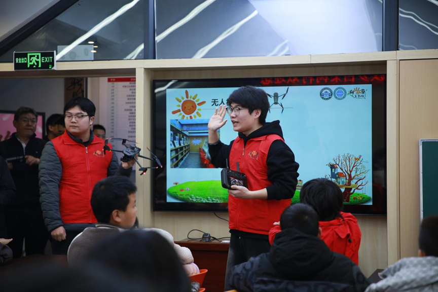 “大家见过会‘画画’的无人机吗?今天它要把我们的学校‘搬’到屏幕上!”支教队员徐帆以“空中小画家-无人机”为主题,用趣味提问点燃孩子们的热情。课堂上,他用通俗的语言讲解无人机的组成部件与“飞得高、看得远、效率高、更安全”的优势,通过电力巡检、农田植保、工程测绘等生活化案例,让孩子们了解无人机在各行各业的广泛应用。