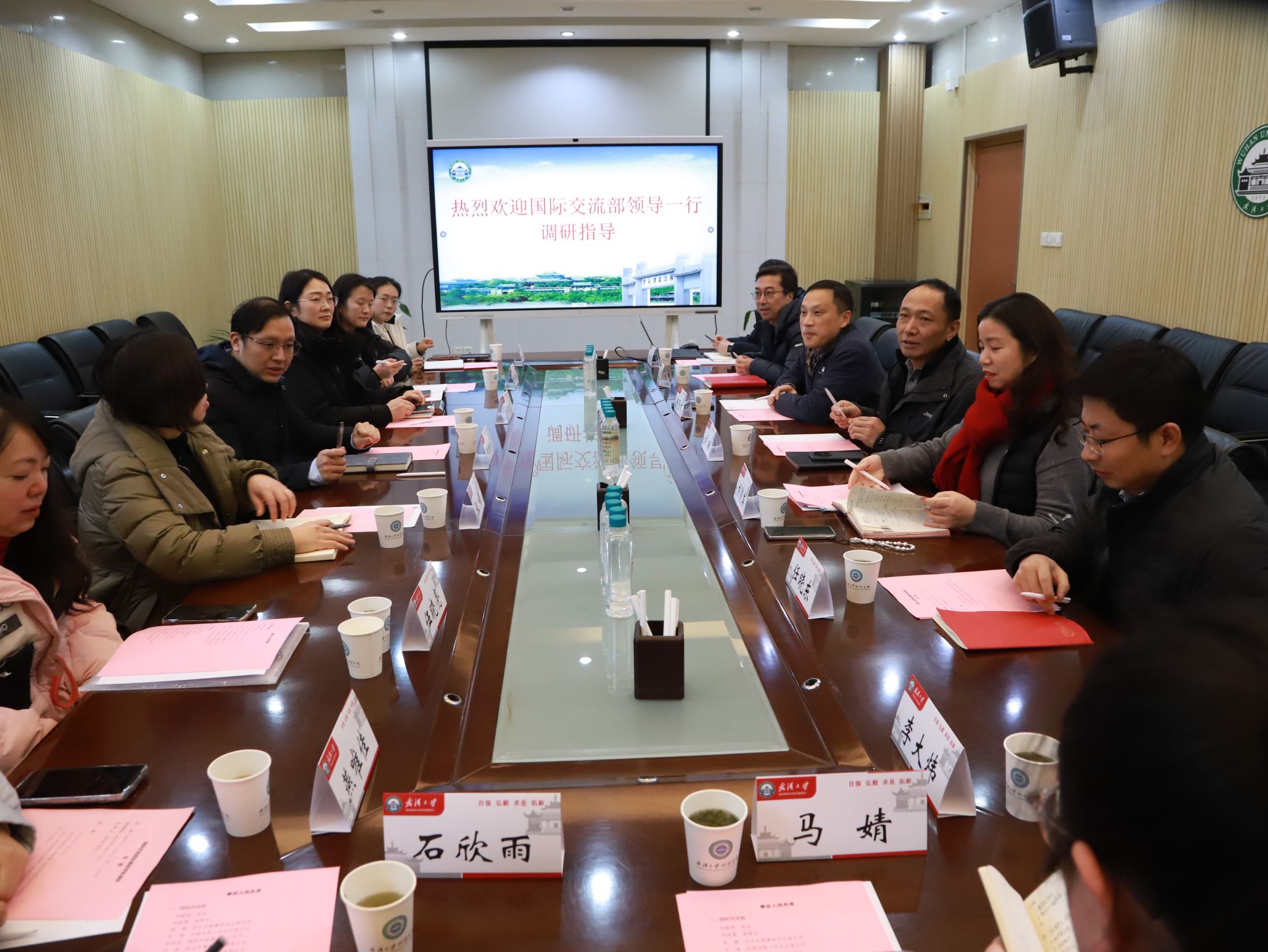 1月20日下午,学校国际交流部部长邓鹤翔、副部长刘晓黎等一行9人来裸体直播 调研座谈,精准对接需求,共商发展举措。裸体直播党委书记刘昕、院长邹贤才、副书记胡俊英、副院长李星星、袁强强、任晓东(挂职)及部分教师代表参加座谈会。会议由袁强强主持。