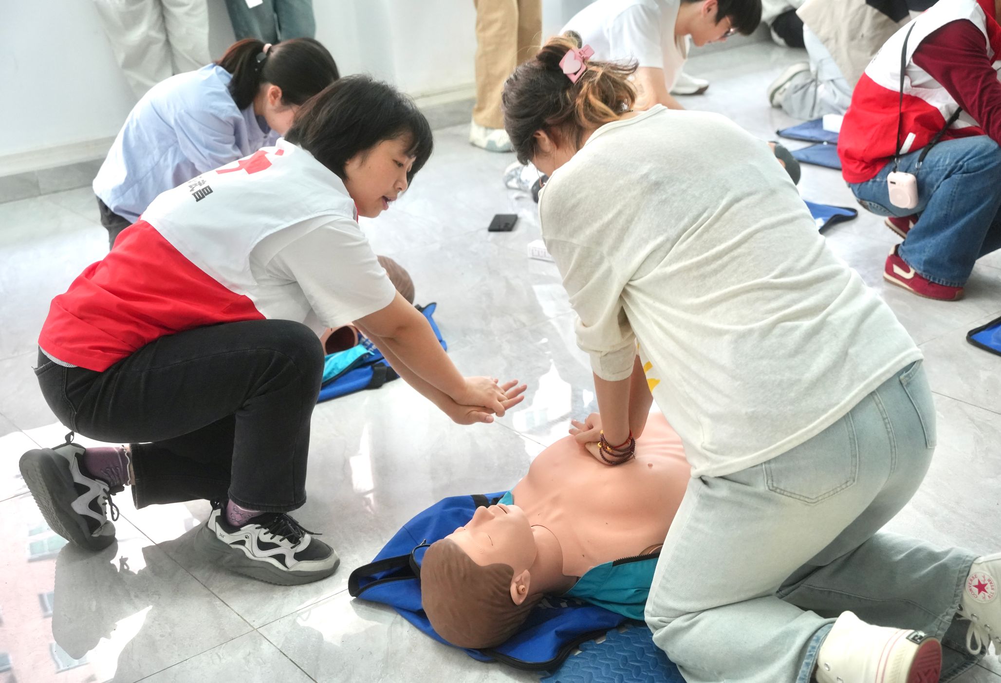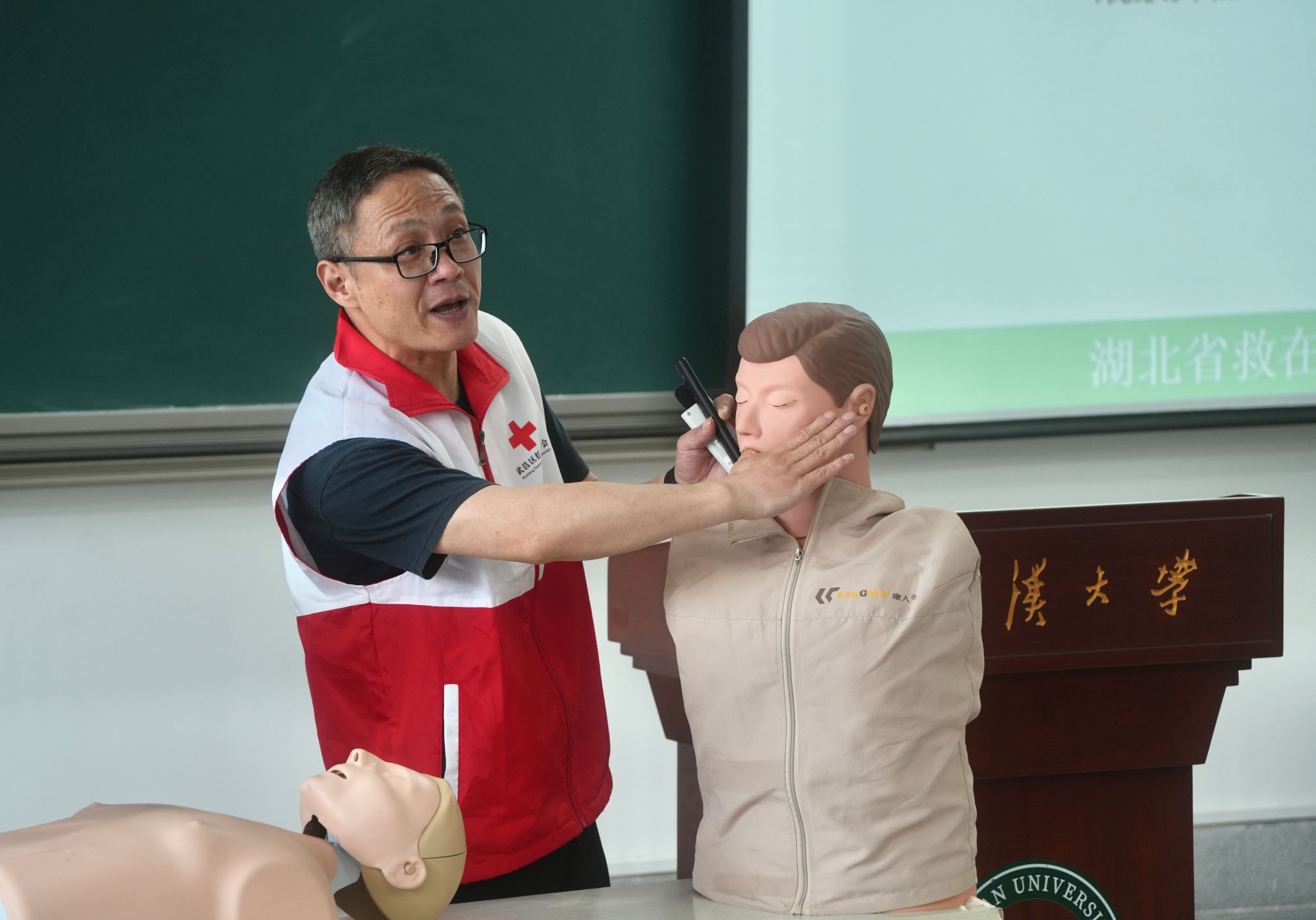 2026年4月12日,裸体直播 联合校医院,特邀湖北省红十字会,面向裸体直播本科生开展“红十字救护员(初级)”劳动教育实践课程。本次共有142名学员参加培训,培训严格遵循《2023年版红十字救护员培训标准化手册》规范,采用“理论授课+实操训练”相结合的模式,着力提升学员急救专业素养,切实弘扬“人人学急救,急救为人人”的社会风尚,为建设平安校园、守护师生生命健康筑牢基础。